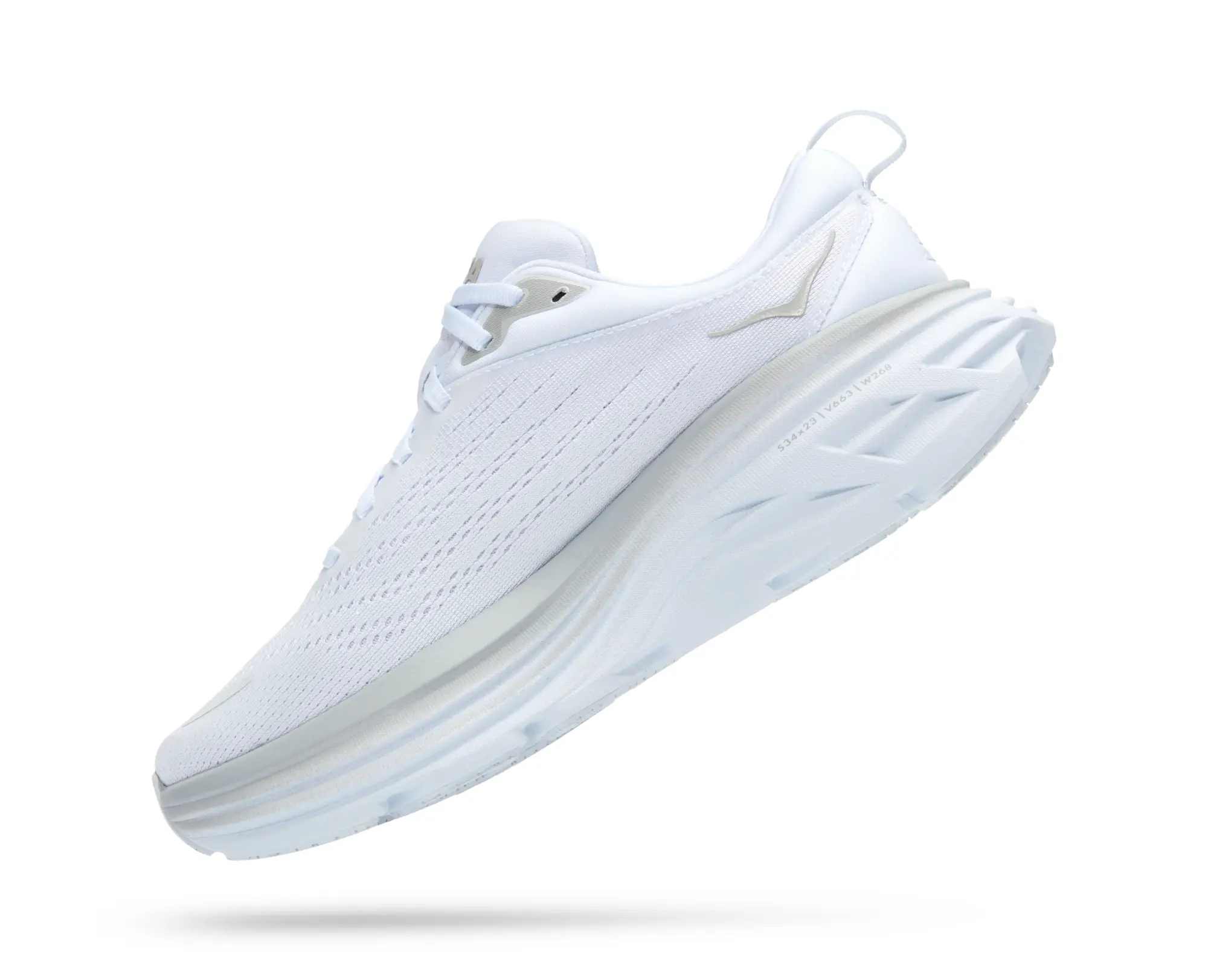 قلب تپندهی Bondi 8، لایهی ضخیم و نرم فوم EVA در زیره آن است که هر نوع فشار وارده به پا را در خود جذب میکند و حس راه رفتن روی ابرها را به کاربر منتقل میکند. این فوم در کنار فناوری Meta-Rocker که در قسمت جلوی کفش بهکار رفته، باعث میشود انتقال وزن پا به شکل طبیعی و بدون شوک انجام گیرد؛ چیزی که در دویدنهای طولانی یا پیادهرویهای شدید، واقعاً تفاوت را رقم میزند.
