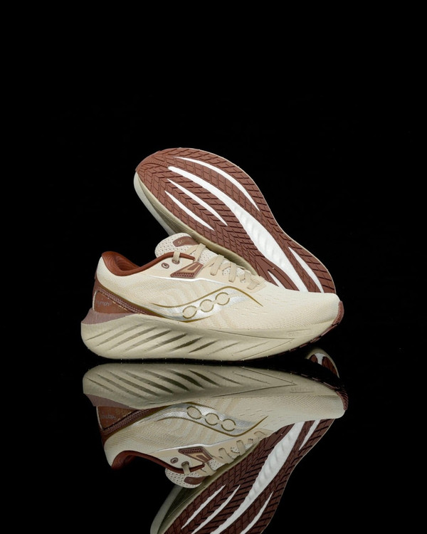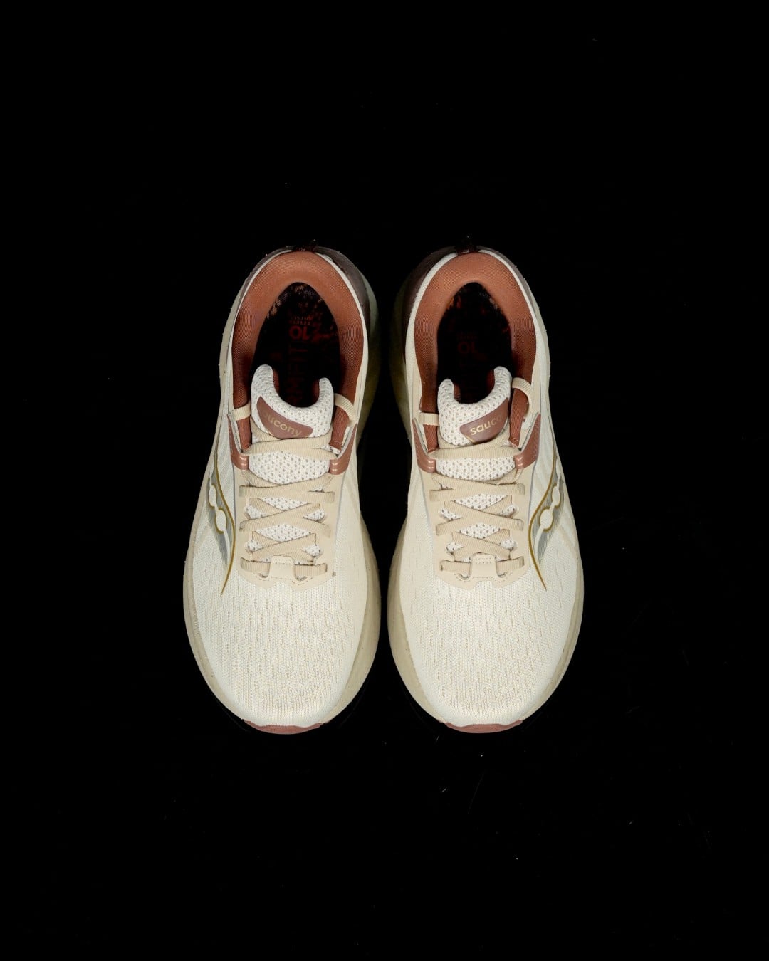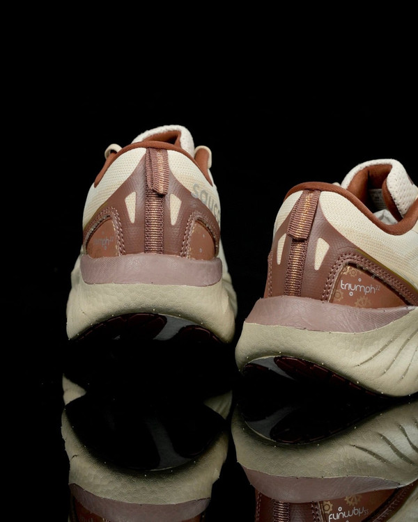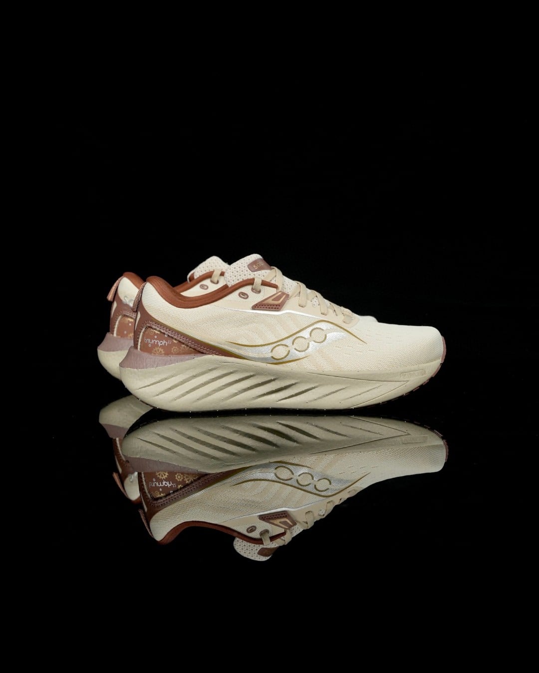 مهمترین تحول در Triumph 22، استفاده از فوم PWRRUN PB در زیرهی میانی است—همان فوم فوقپیشرفتهای که در مدلهای مسابقهای Saucony مانند Endorphin Pro 4 بهکار رفته. این فوم از جنس PEBA ساخته شده و نسبت به نسخهی قبلی (PWRRUN+) سبکتر، پرانرژیتر و پاسخگوتر است. طراحی Rocker در هندسهی کفش، حرکت روان از پاشنه به پنجه را تسهیل میکند و ساختار داخلی با کفی Ortholite، یقهی نرم و فضای پنجهی بازتر، راحتی را در تمام طول مسیر حفظ میکند.