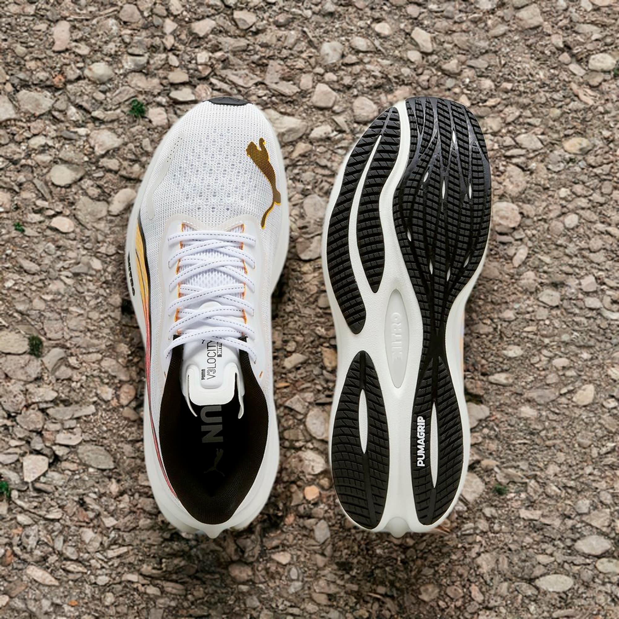 Velocity Nitro 3 در لحظهی اول حس سبکی و پاسخگویی بالا منتقل میکند. فوم NITRO انرژی گامها را بهخوبی بازمیگرداند، در حالی که زیرهی PUMAGRIP چسبندگی عالی در مسیرهای شهری و مرطوب ارائه میدهد. طراحی snug در ناحیهی میانی باعث قفل شدن پا بدون فشار اضافی میشود، و فضای پنجه برای راحتی در استفادهی چندساعته کافی است.