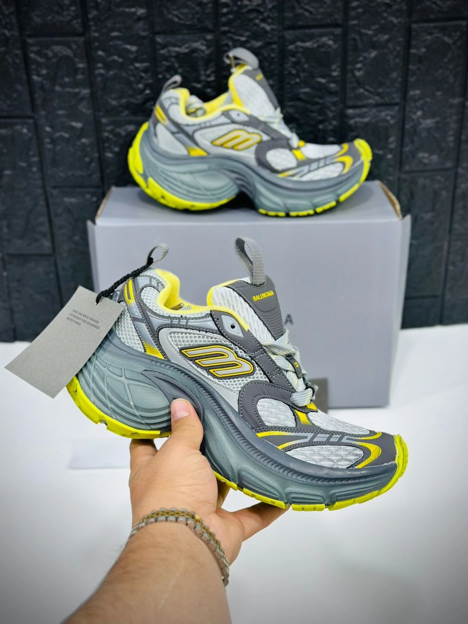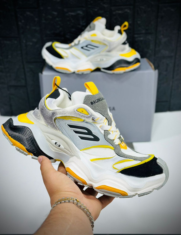 جزئیات طراحی دقیق: لوگوی برجسته Balenciaga روی زبانه، نماد ورزشی "B" در قسمت بالایی و شماره سایز گلدوزیشده در پشت کفش از جمله جزئیاتی هستند که به اصالت و زیبایی این مدل افزودهاند.