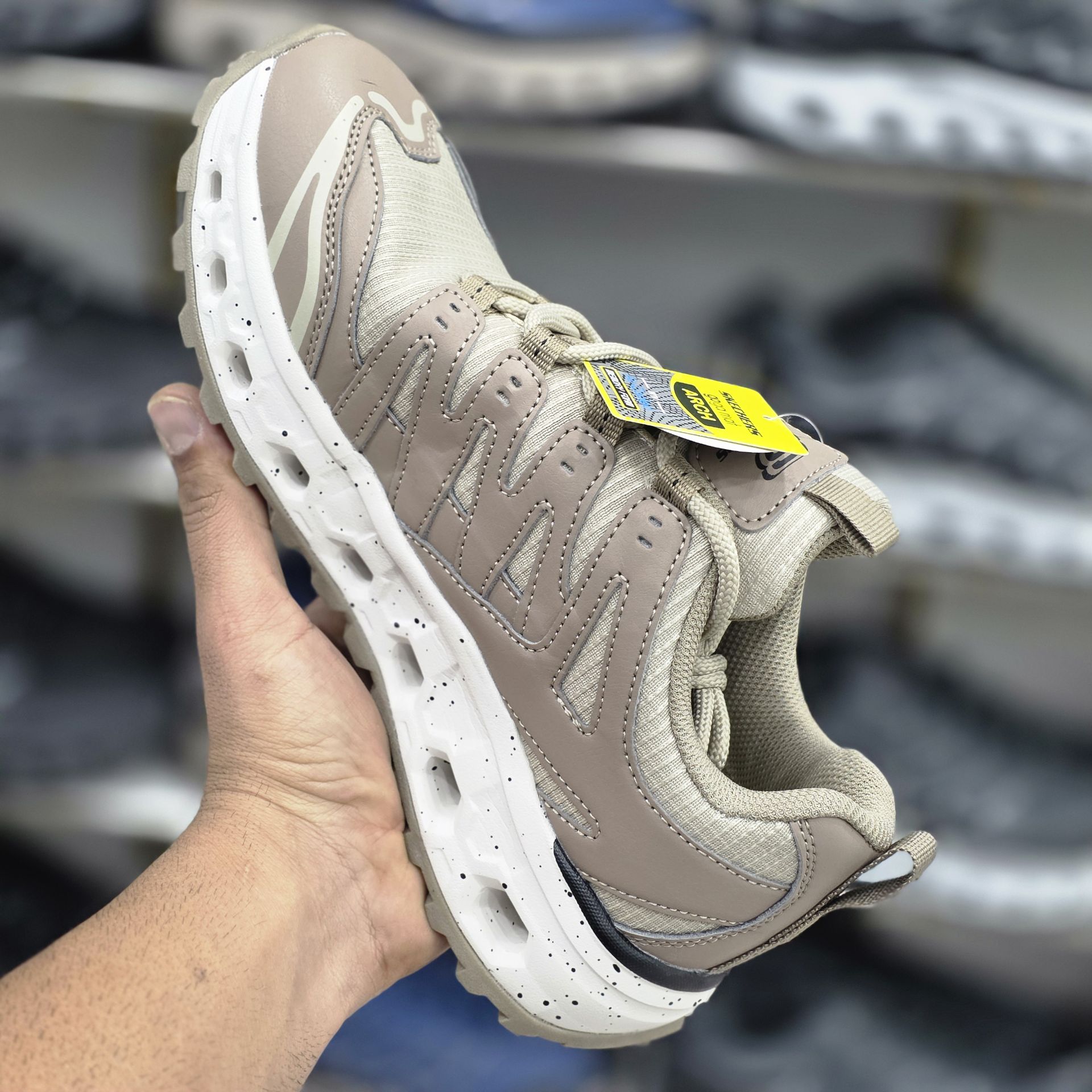 • جزئیات برندینگ: لوگوی Skechers در ناحیهی کناری، زبانه و پاشنه