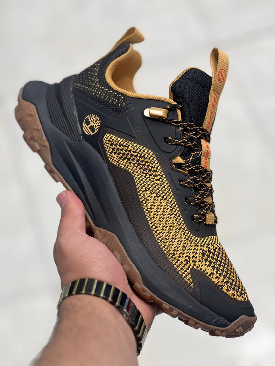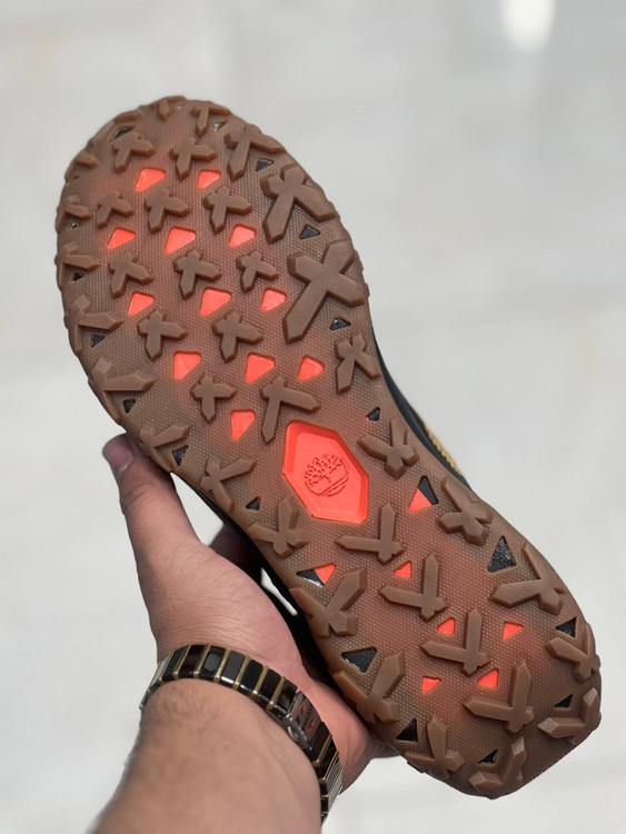 برند «تیمبرلند» (Timberland) که با لوگوی درخت معروف این برند روی قسمت کناری آن قابل تشخیص است. طراحی آن مناسب پیادهروی و کوهپیمایی سبک است و دارای زیره ضخیم با عاجهای مقاوم، رویه بافتدار مشکی و زرد، و بندهای محکم میباشد. همچنین بند کشی روی پاشنه و زبانه دارد که پوشیدن آن را آسانتر میکند.