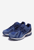 رنگ سرمهای این مدل با طیفهای مختلف آبی و طراحی لایهلایهی رویه کفش، جلوهای قدرتمند و جذاب به آن بخشیده است. استفاده هوشمندانه از متریالهایی مانند mesh (مش تنفسی) و synthetic overlays، علاوه بر ایجاد استایلی پویا، تهویهی عالی و وزن سبک کفش را نیز تضمین میکند.
