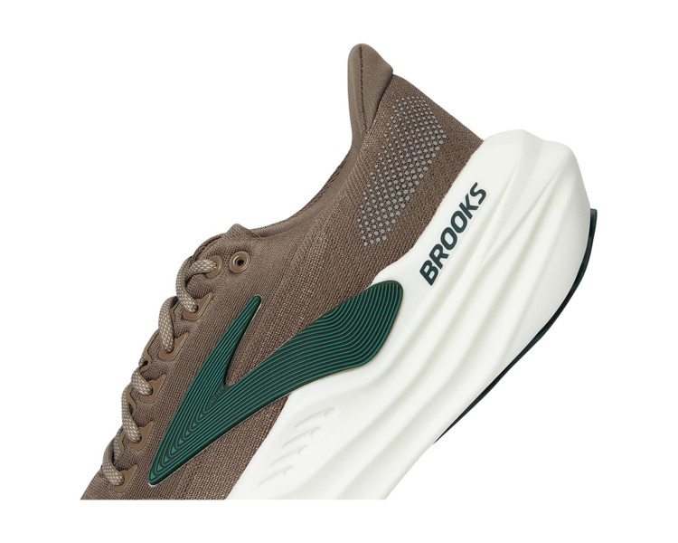 رویهی کفش از مش مهندسیشده با بافت ریز ساخته شده که تهویهی مطلوبی را فراهم میکند و در عین حال، ساختار کفش را سبک و منعطف نگه میدارد. فرم کلی کفش با خطوط منحنی، لوگوی برجسته Brooks و رنگهای ملایم، ظاهری مدرن و آرامشبخش دارد—مناسب برای دوندگان مینیمالیست و حرفهای.